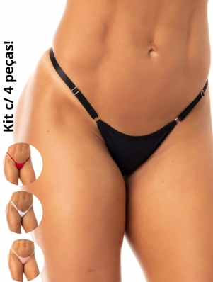 Kit 4 Calcinhas Cintura Média com Pingente e com Regulagem na Lateral, Doce Desejo!