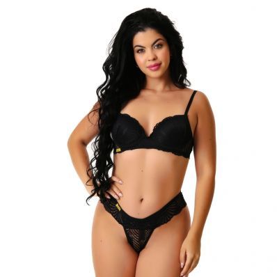 Aquele conjunto para quem não abre mão da beleza da renda. Conjunto confeccionado em poliamida. Alças fixas reguláveis e fechamento traseiro por colchetes. A calcinha é linda, toda rendada apenas com a cintura em viés. Produto confortável, delicado e sensual.